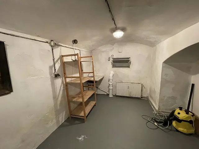 Ideální prostor pro dílnu či k dlouhodobému skladování. Prostor je v suterénu bytového domu v ulici Oldřichova, jen8 minut pěšky od tramvajové zastávky Jaromírova. Na domě je instalována monitorovací kamera a v chodbě domu, je bezpečnostní mříž. Prostor je vybavený silným světlem; ventilátorem pro odsávání vzduchu; dřezem s vodovodní baterií a odpadem; Dřevěné regály. Podlaha je zpevněná.