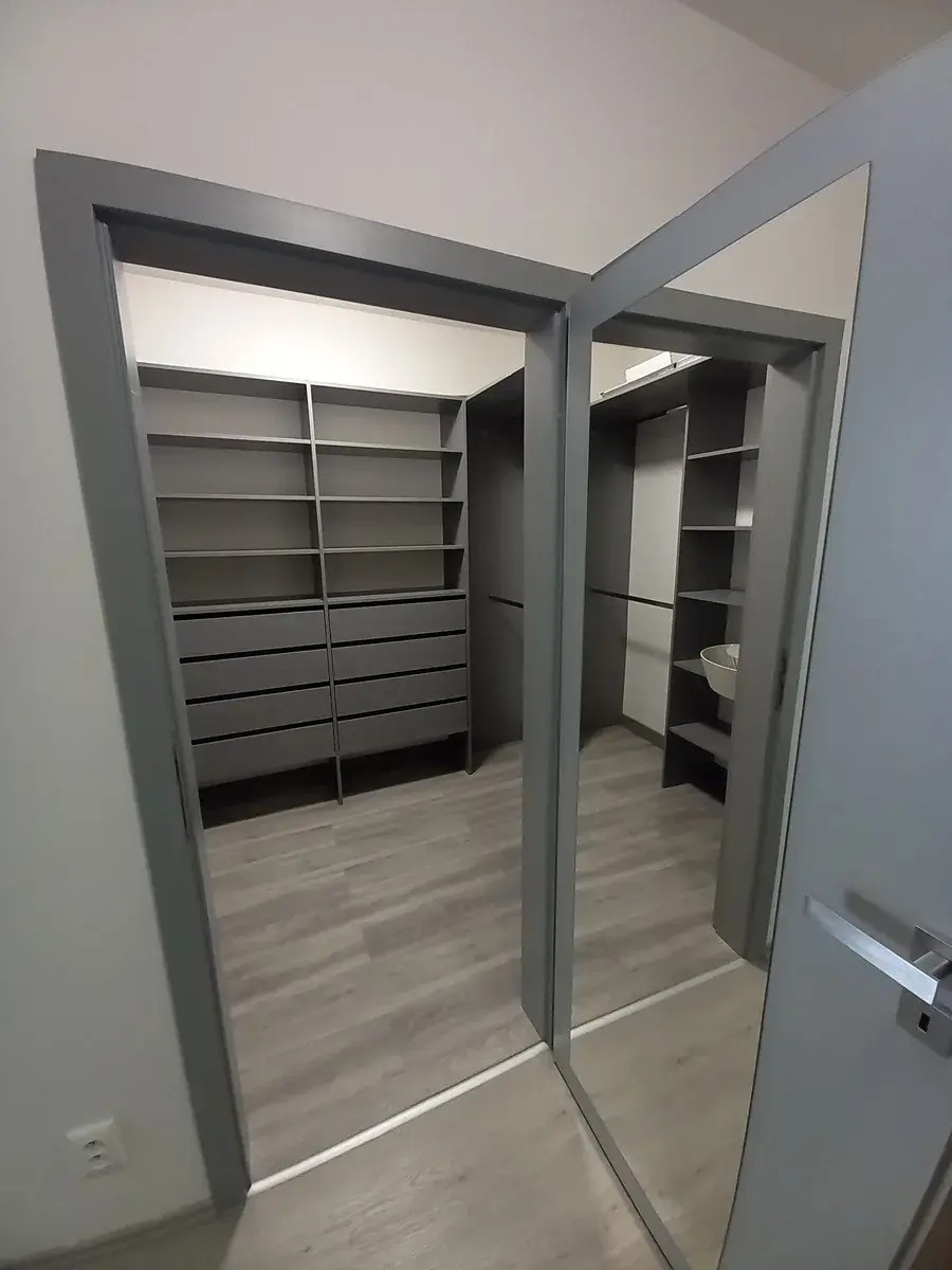 • Po pravé straně od vchodových dveří do bytu můžete vejít do prostorné komory využívané jako šatna (5,30 m2) ve které oceníte velké zrcadlo umístěné na vnitřní straně dveří.