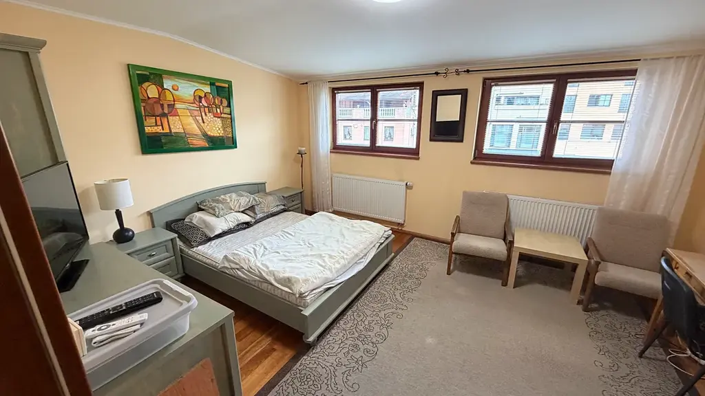 V pokoji se nachází dvou postel, nábytek a televize. Ložnice je vybavena postelí, úložnými prostory, křesly, a televizí.