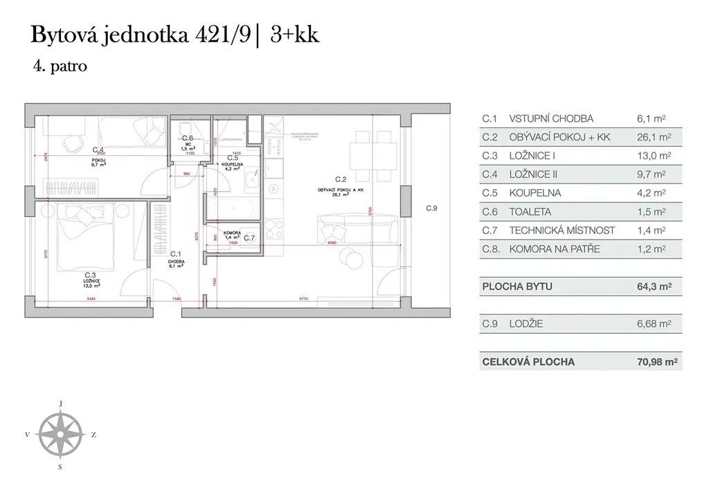 Dispozice bytu 3+kk:
