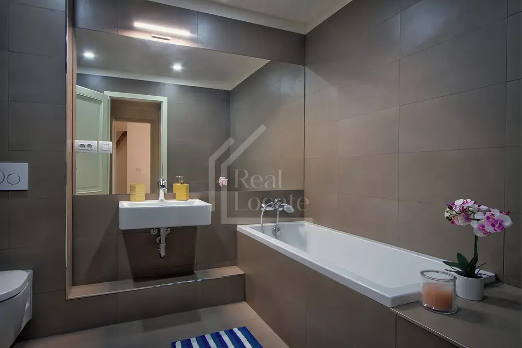 V bytě je dostatek denního světla. Vybavení bytu je velice vkusné a elegantní doplněné krásnými krovy.
