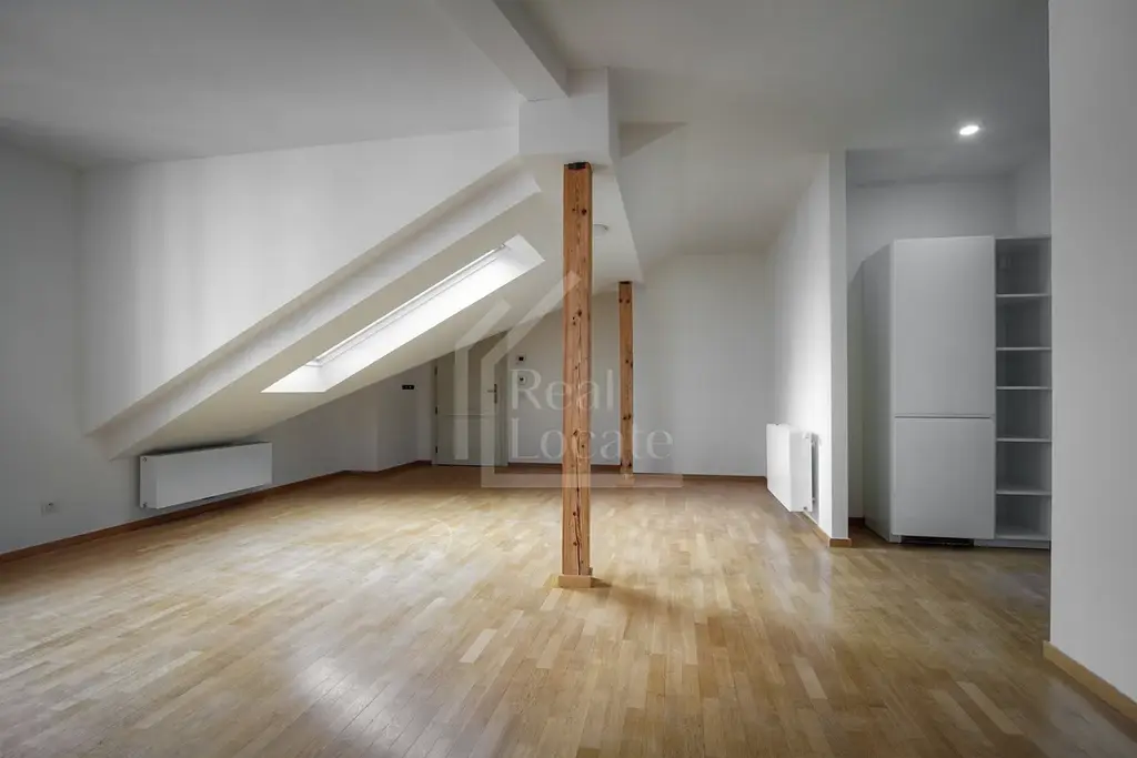 Jedná se o podkrovní byt o celkové rozloze 88m2. V bytě je dostatek denního světla. Je zde kompletně vybavena moderní kuchyně se všemi spotřebiči - digestoř, varná deska, elektrická trouba, myčka, lednice s mrazákem. Bytová jednotka má elegantní a rustický nádech doplněný dřevěnými krovy. Byt je velice prostorný a chytře oddělen na různé sekce - ložnice není oddělena dveřmi od obývacího prostoru. Prostorná kuchyně včetně obývacího pokoje a koupelna s vanou. Byt se pronajímá nezařízený.
