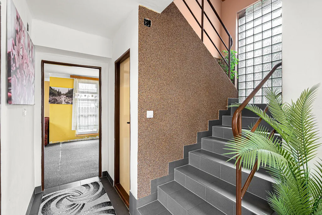 Nemovitost je v původním stavu, ale již zde proběhly úpravy pro komfortnější bydlení – rekonstrukce schodiště, povrchů, výměna oken v horním patře a další drobnosti.
