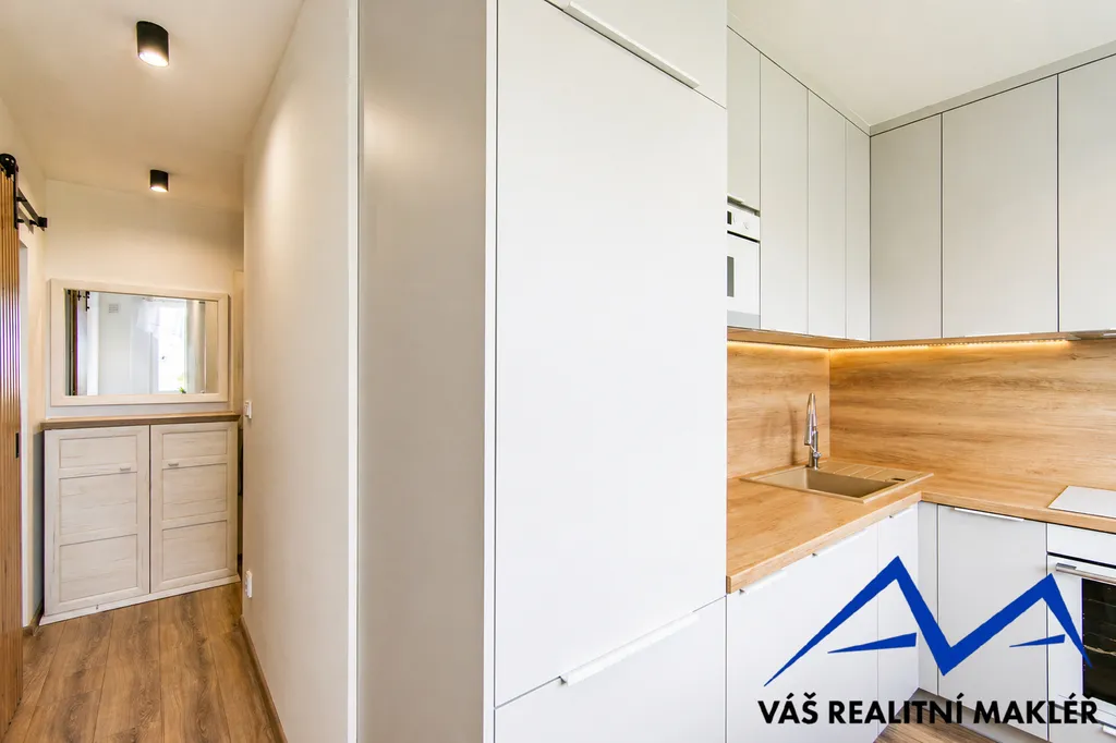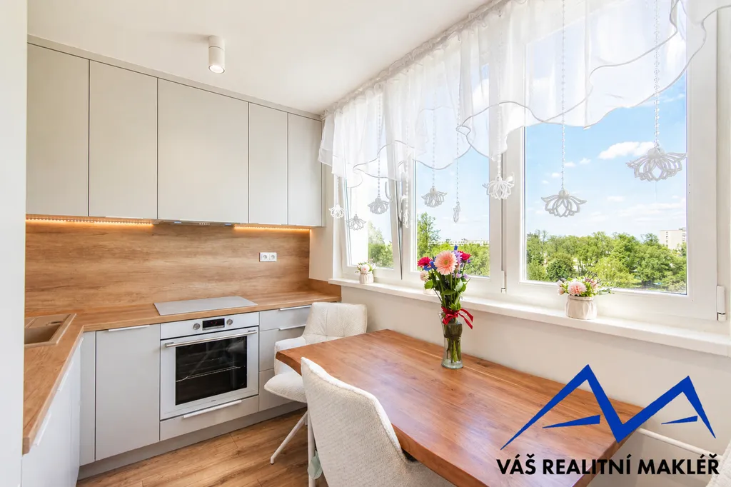 Dominantou bytu je kuchyňská linka vyrobená na míru, vybavená vestavěnými spotřebiči, jako je myčka, sklokeramická deska, trouba, digestoř a lednice s mrazákem. Velkou výhodou je, že byt se prodává včetně veškerého vybavení a spotřebičů, takže je připraven k okamžitému nastěhování nebo k dalšímu pronájmu, včetně krátkodobého typu Airbnb.
