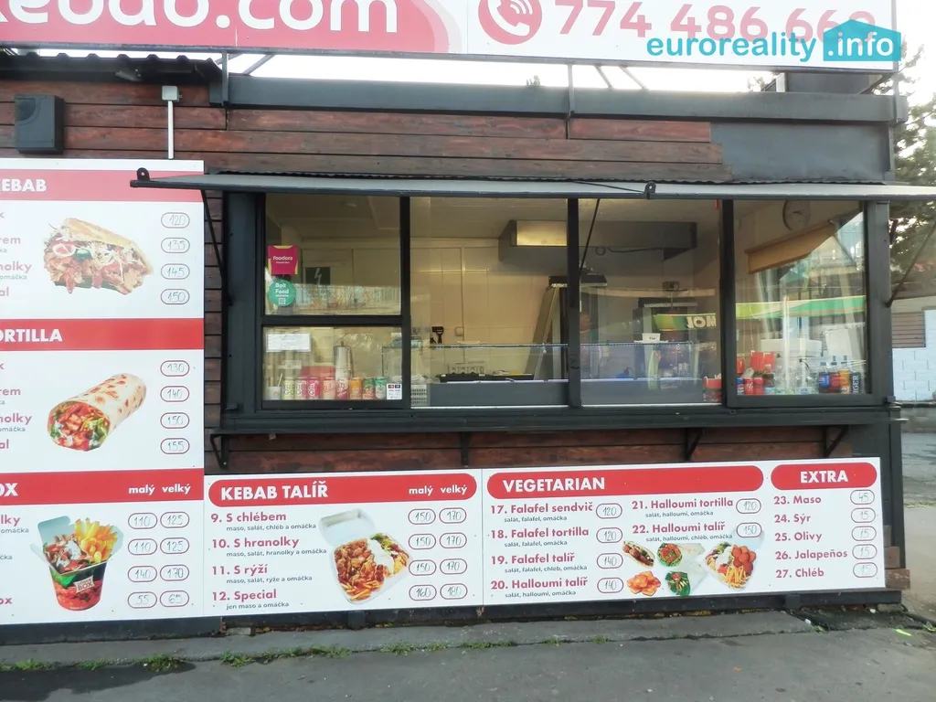 Stánek je po rekonstrukci, kolaudace na rychlé občerstvení, voda je napojená na vodovod, odpady na kanalizaci, elektřina 400 V. Je zavedená příprava a prodej kebabu, rozvozy, otevírací doba je neomezená.