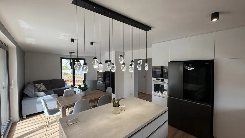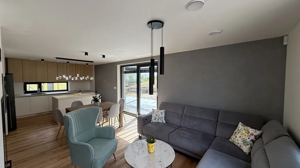 Jde o zcela nový moderní dům s velmi ergonomickou dispozicí, nabízející bydlení i pro vícečlenou rodinu. Dům byl kolaudován v lednu 2024.