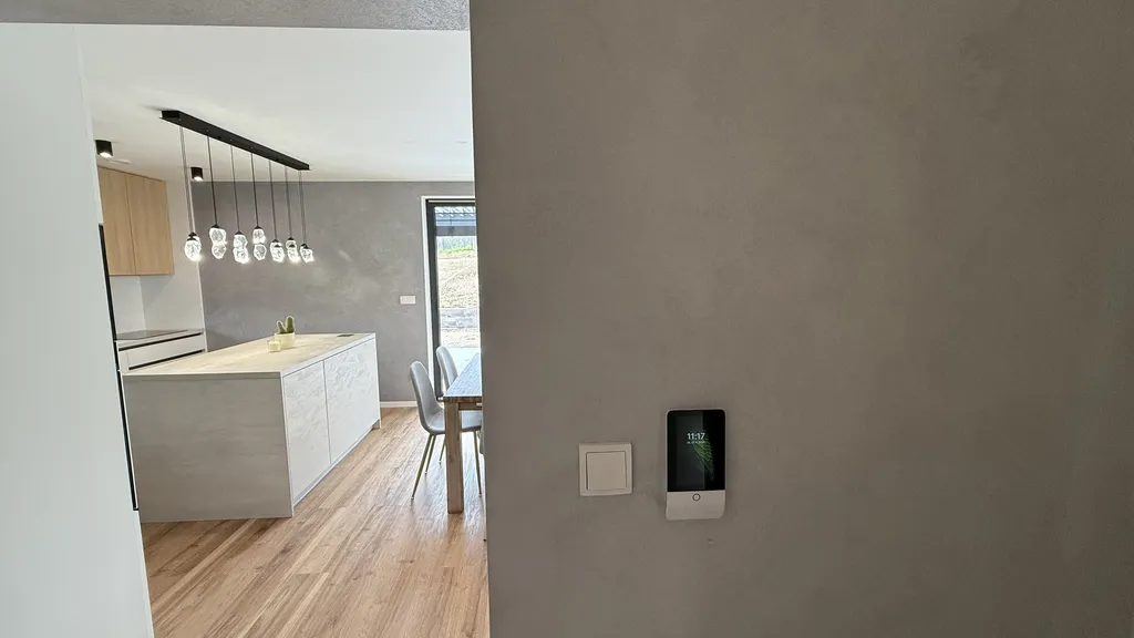 Osazení LED osvětlení, přímého i nepřímého, a použítí chytrých LED zdrojů světla, kdy se dá modifikovat intenzita, chromatičnost i barevnost jednotlivých světel, to jen podtrhuje moderní smýšlení majitelů domu, s důrazem na ekonomiku provozu domu a celkové úspory. Instalace prvků chytré domácnosti s alarmem JABLOTRON, pohybovými a termo sensory v jednotlivých místnostech a v oknech se sensory proti rozbití a vysazení, to vše v případě výpadku dodávky elektřiny s výkonným záložním zdrojem. Veškeré prvky, nastavení a upozornění lze ovládat také na dálku, přes aplikaci v mobilním zařízení.