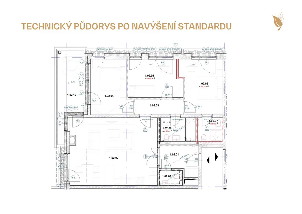 - byt 4+kk o velikosti 101,4 m²