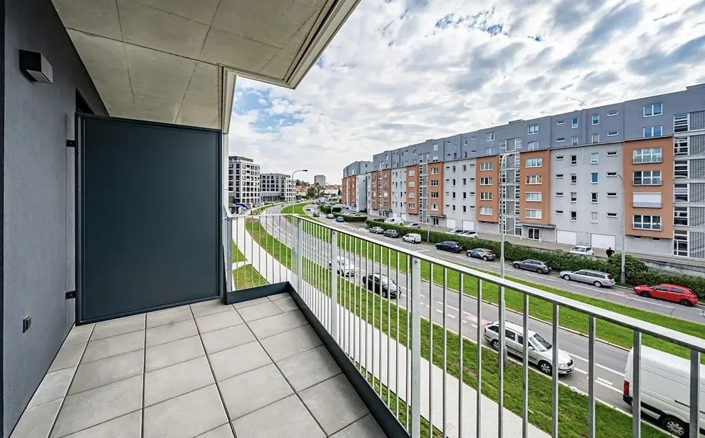 Byt se nachází ve 4. podlaží a nabízí komfortní bydlení v novostavbě s vysokým standardem. Dispozice zahrnuje prostorný obývací pokoj s kuchyňským koutem vybaveným kvalitní kuchyňskou linkou Hanák včetně spotřebičů, koupelnu se sprchovým koutem, pračkou a WC a předsíň s vestavěnou skříní. K bytu náleží balkon o ploše 14 m².