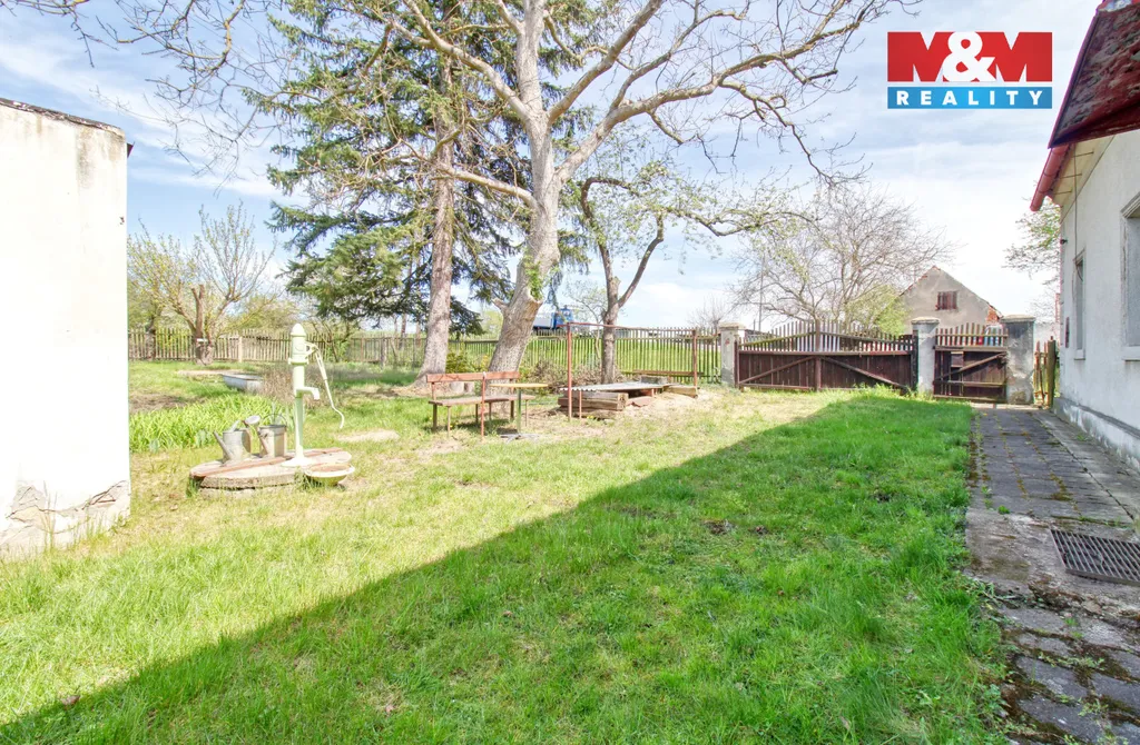 U domu je zahrada o rozloze 651 m², na které se nachází chlévky, kůlna, suché WC a skleník.