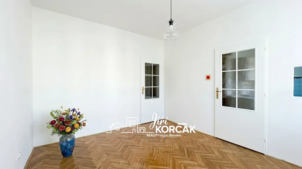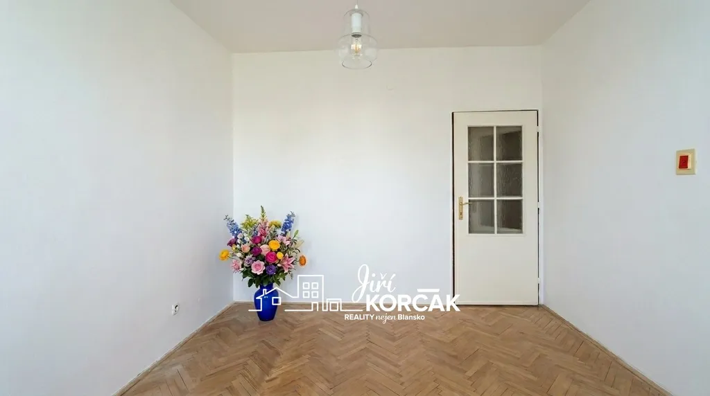V bytě jsou osazena plastová okna, v pokojích jsou položeny parkety v zachovalém stavu.