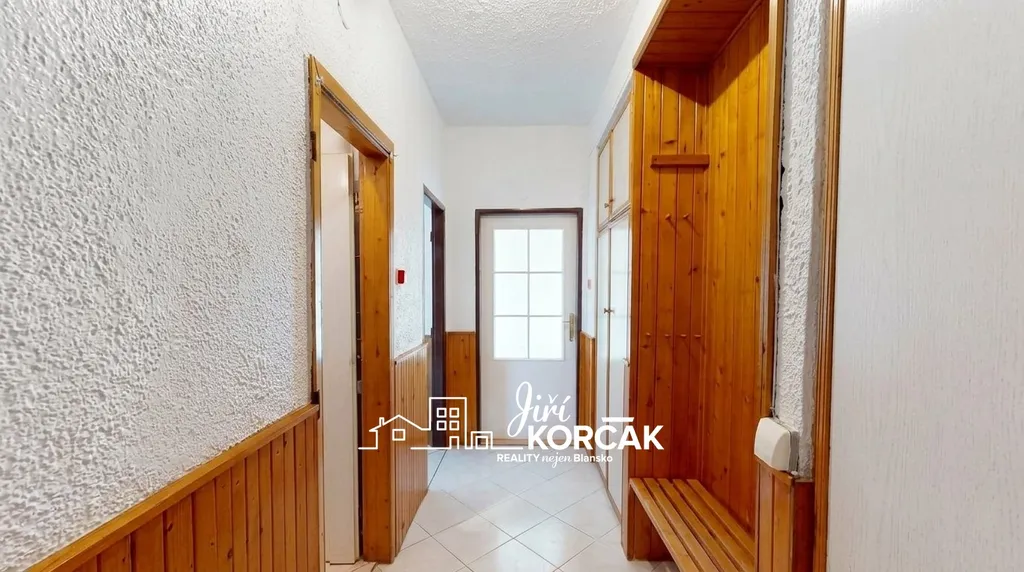 Dispozice nabízí vstupní předsíň, která je prakticky řešena vestavěnou skříní s botníkem a věšákem, takže nabízí dostatek úložného prostoru, prostorný obývací pokoj, ložnici a pokojík, dále samostatnou kuchyni, koupelnu a toaletu.