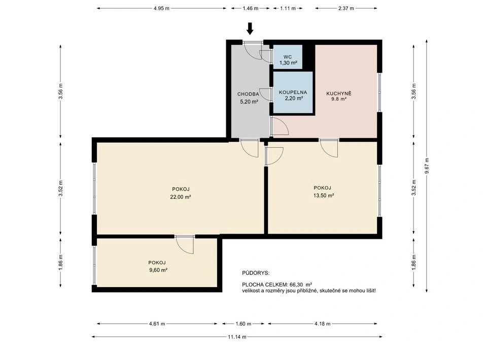 Výměry jednotlivých místností jsou:
