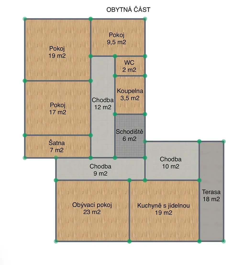 • Půda vhodná k vestavbě – možnost vybudování plnohodnotného dalšího patra
