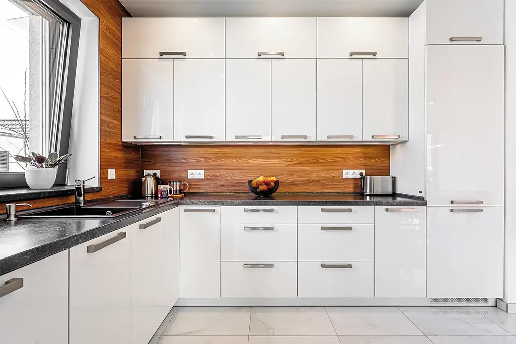 • Interiér: Masivní dřevěné prvky, velkoformátová dlažba