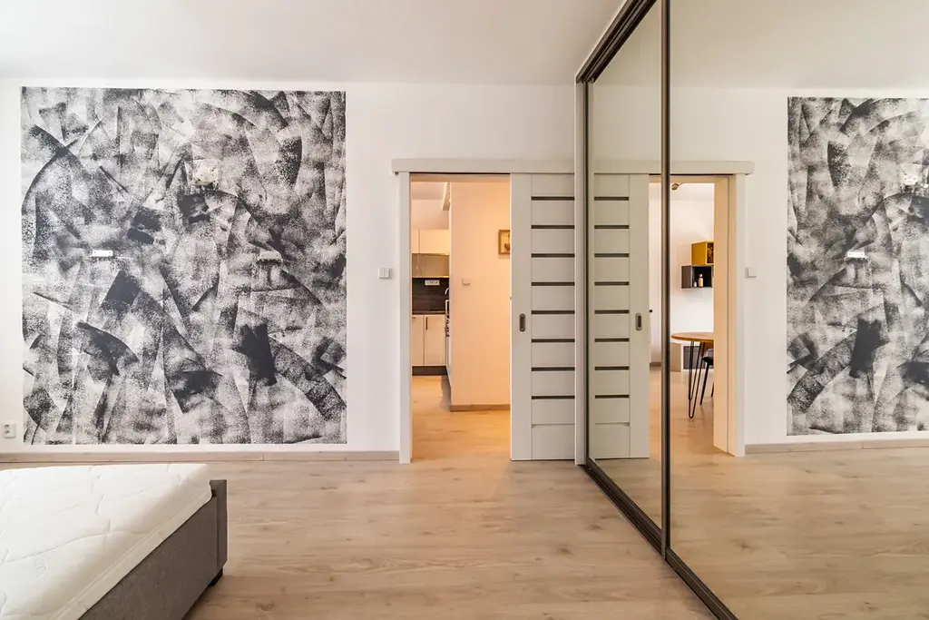 Byt prošel pečlivou a vkusnou rekonstrukcí a je kompletně zařízený designovým nábytkem, který poskytuje komfortní a moderní bydlení bez nutnosti dalších investic.