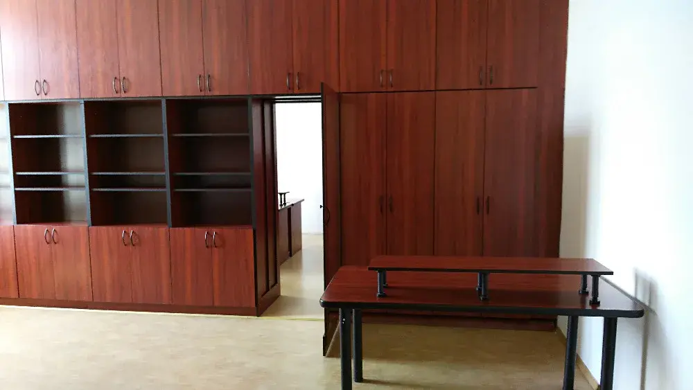 Kancelář je vybavena starším, avšak funkčním nábytkem. Nábytek lze v případě potřeby vystěhovat.