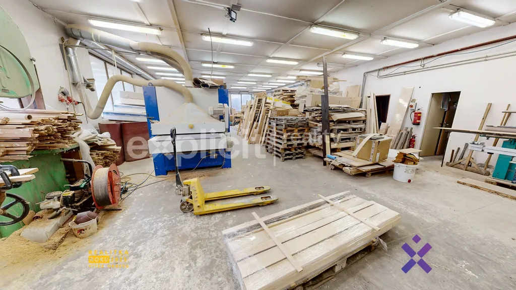 Areál tvoří zděná výrobní hala o rozměrech 20 × 10 m, konstrukčně uzpůsobená pro celoroční provoz. Objekt je vybaven vytápěním na tuhá paliva, dostatečným osvětlením a odolnou betonovou podlahou s vysokou nosností, vhodnou pro strojní výrobu i manipulaci s materiálem. Vstup do haly je řešen velkými vraty umožňujícími bezproblémovou logistiku a zásobování. Součástí zázemí je kompletní sociální vybavení (kuchyňka, sprcha, toalety) pro zaměstnance.