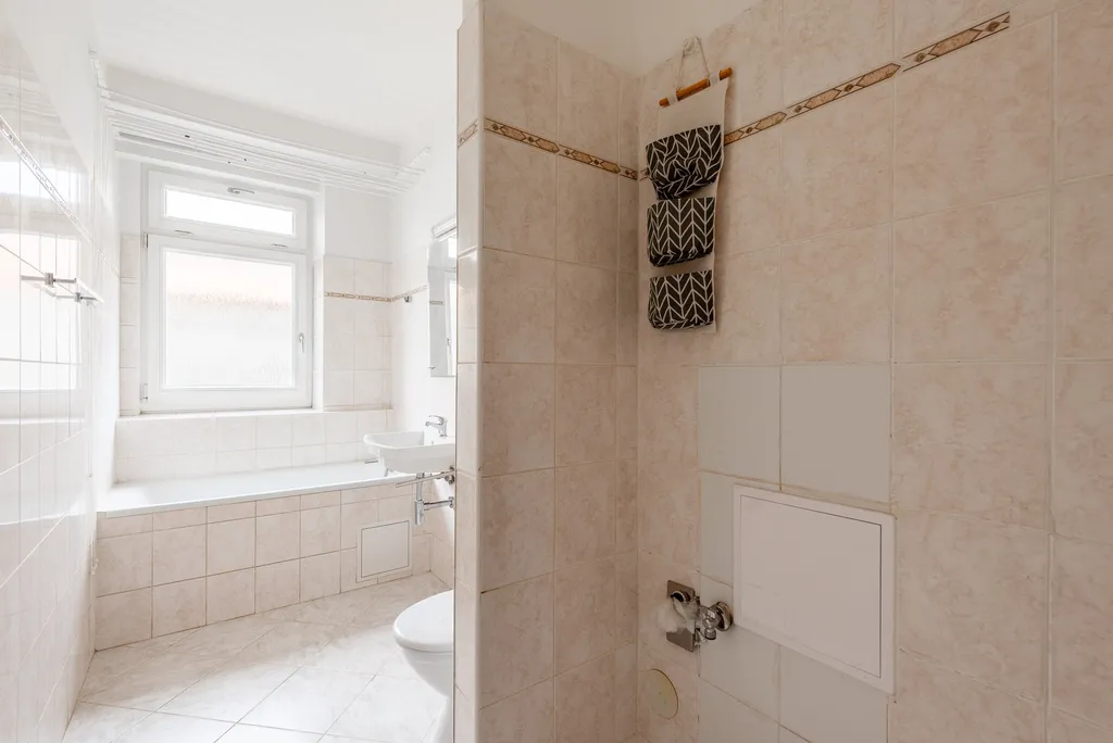Interiér prošel rekonstrukcí a poskytuje komfortní bydlení. Na podlahách jsou parkety, okna jsou plastová a vytápění je řešeno podlahovým topením. Byt je laděn do elegantních krémových tónů a disponuje vestavěnými skříněmi s dostatkem úložného prostoru. Součástí bytu je také praktická komora. K dispozici je sedačka v obývacím pokoji a postel v ložnici (bez matrace).