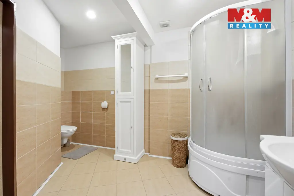 V suterénu je k dispozici wellness místnost se saunou a vanou pro nájemníky, což zvyšuje atraktivitu pronájmu. Dům je v dobrém technickém stavu a nabízí další potenciál například možnost vybudování střešní terasy s výhledem.
