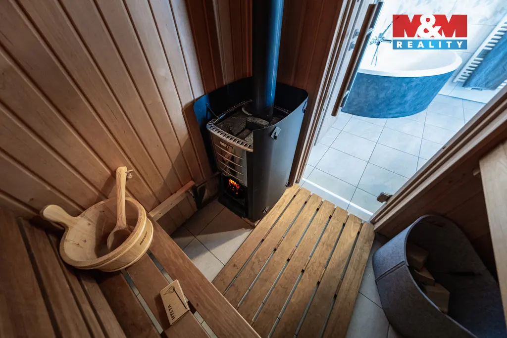 Na pozemku o výměře 1780 m² s automatickou závlahou z vlastní kopané studny stojí druhý plně vybavený domek pro hosty/rodiče (2+kk, 48 m²) vhodný k celoročnímu užívání. Celá nemovitost je zabezpečena systémem Jablotron a napojena na optickou síť. Veškerá občanská vybavenost je dostupná přímo v obci a blízkém okolí.