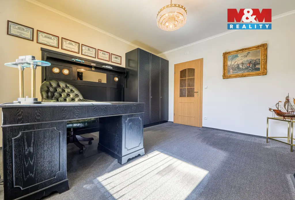 Na prodej nádherný rodinný dům s terasou, postavený v 2008 v Plzni - Radobyčicích na pozemku o výměře 883 m². Již při vstupu k domu vás uvítá nádherný pohled na vstupní prostor domu. Po vstupu chodba. V přízemí domu naleznete obývací pokoj se vstupem na zadní terasu. Dále kuchyň, samostatná jídelna, ložnice, pracovna, další místnost pro využití dle potřeby. V přízemí naleznete koupelnu s vířivou vanou, zděným sprchovým koutem, dvěma umyvadly, wc a bidetem. Dále toaleta pro hosty. Po dřevěných schodech se dostaneme do druhého podlaží domu, kde se nachází ložnice a půda připravena k dalším úpravám. V domě je klimatizace, dále venkovní žaluzie pro pohodlné udržení příjemné atmosféry. Vysouvací zastřešení na terase. K domu náleží zděná garáž s dílnou. Elektrickými vraty na dálkové ovládání z ulice pohodlně zaparkujete dva vozy. Radobyčice nabízejí klidné bydlení na okraji města s výbornou dostupností.