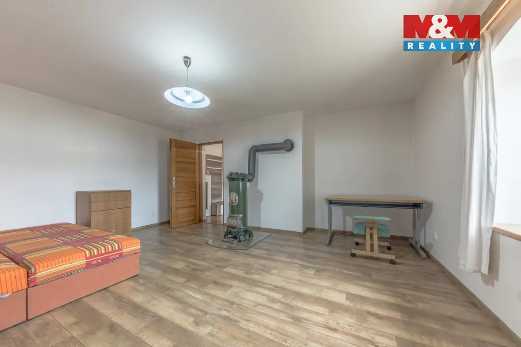 Nabízí světlé prostorné pokoje, samostatnou kuchyni, koupelnu a dvěmi WC.
