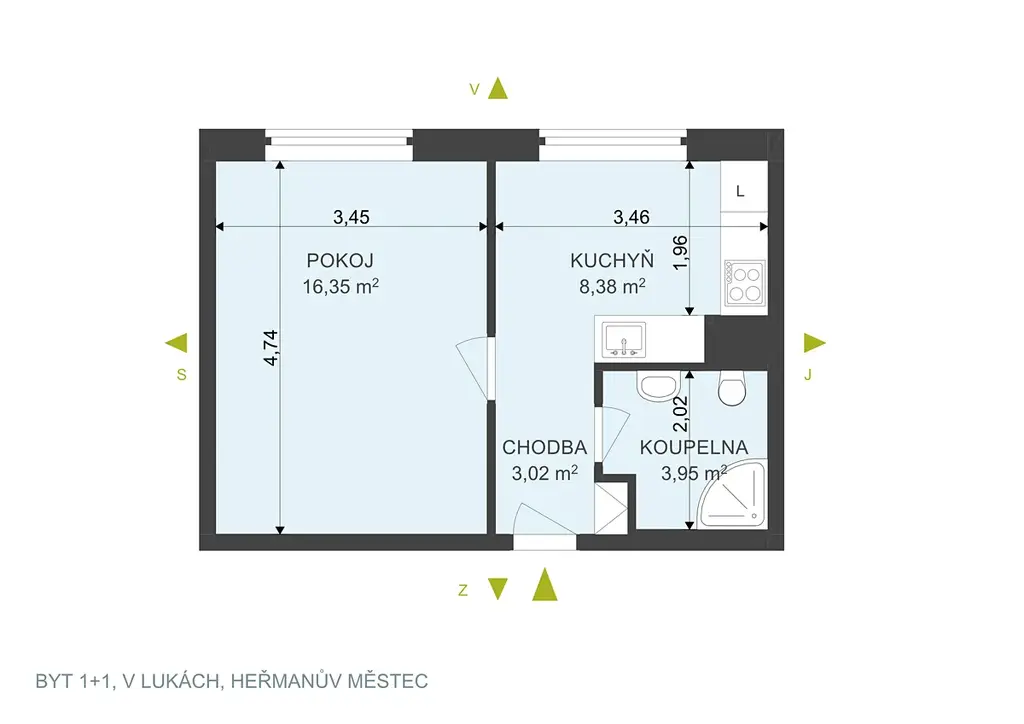 Pronájem bytu 1+1, Heřmanův Městec, V Lukách, 32 m2