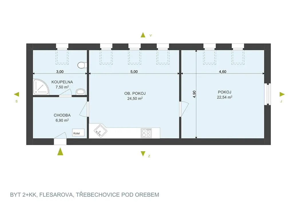 Nabízíme Vám k prodeji byt o velikosti 2+kk s parkovacím stáním, sklepem a podílem na společné zahradě v Třebechovicích pod Orebem.