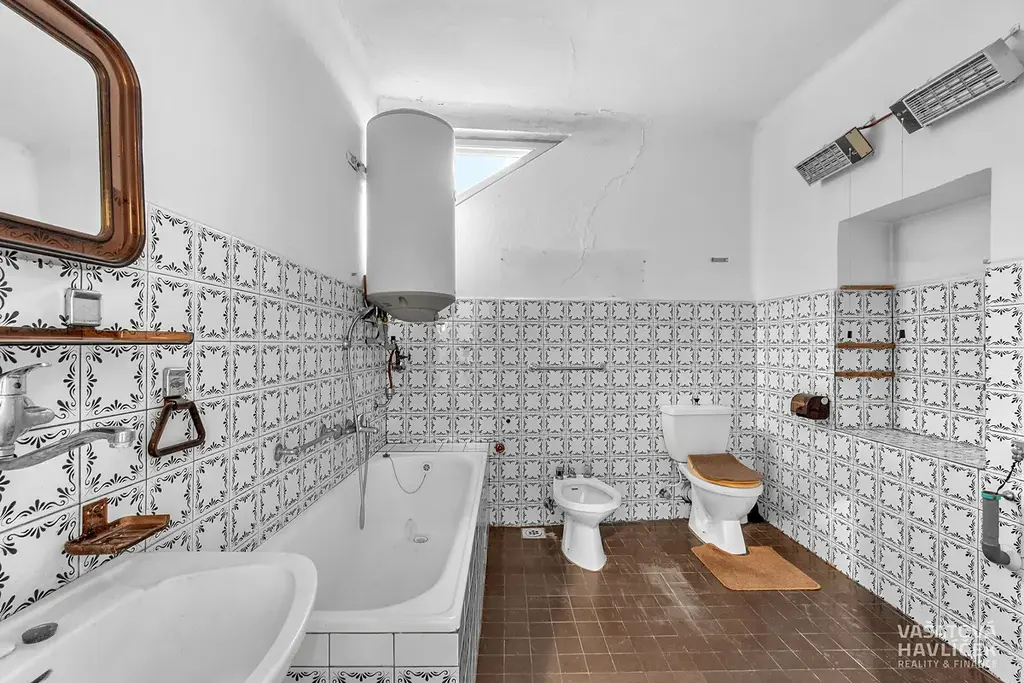V přízemí se nachází prostorná chodba, která slouží také jako průchod do druhého domu, tři pokoje a vstup do sklepa. V patře jsou dva pokoje, kuchyň, koupelna s WC a výstup na půdu.