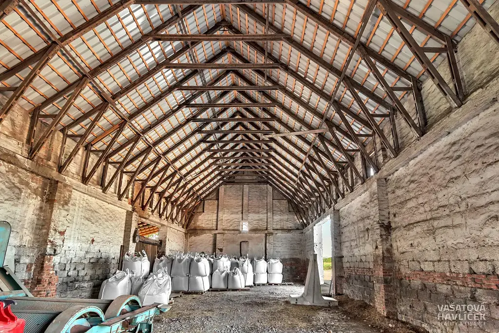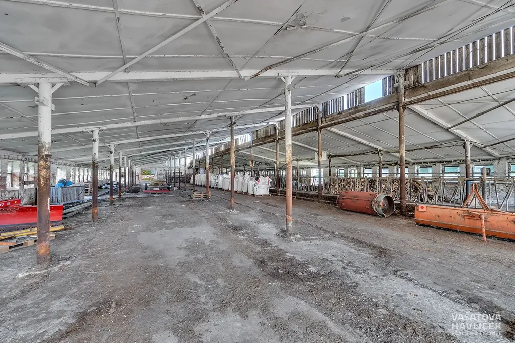 Jedná se o rovinatý pozemek a tři budovy. Jedna je bývalý kravín, který byl ještě v roce 2022 funkční, druhá budova je hned vedle, není uzavřená, má vysoké stropy (cca 10 m), je zde nová plechová střecha. Třetí hala je využívána jako skladový prostor. Všechny tři budovy jsou nevytápěné. V areálu je částečně zpevněná plocha položenými panely a na některých místech zeleň. Na pozemku se nachází vrtaná studna (cca 50 m hluboká), která slouží pro celý areál. Odpadní voda je vyvedena do septiku.