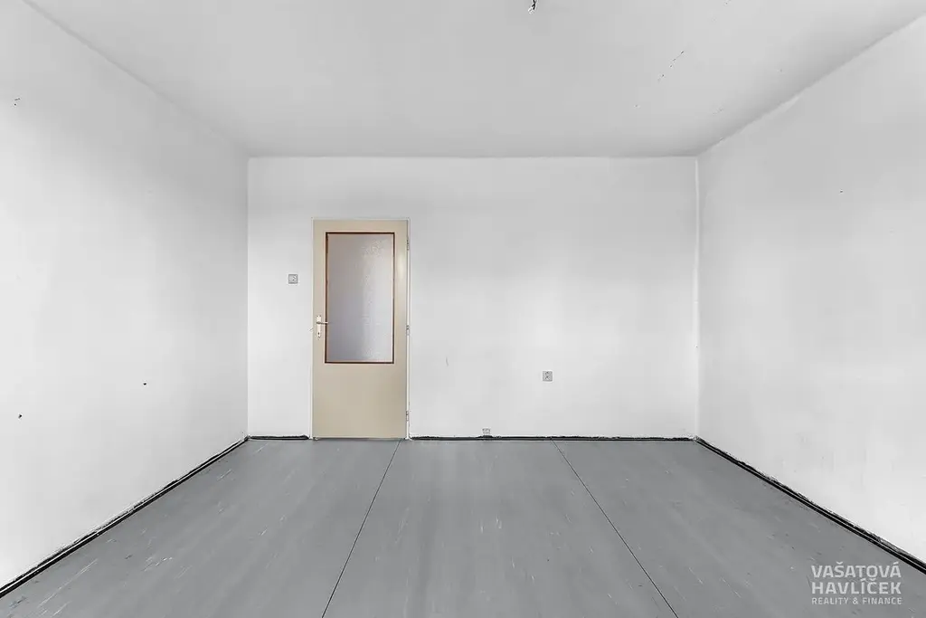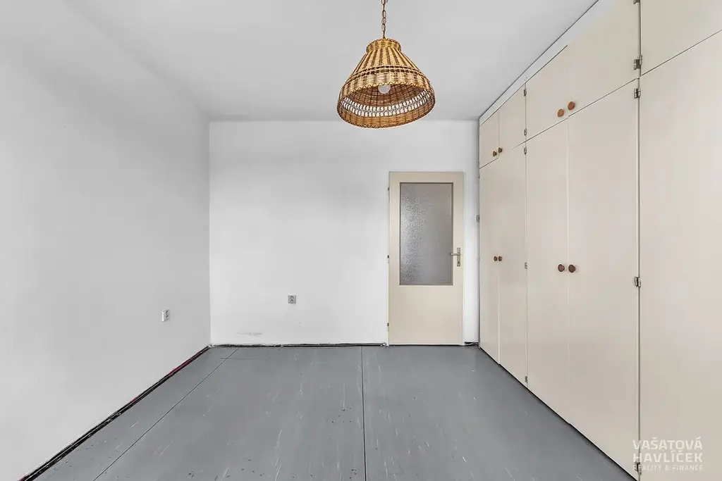 Byt je orientován na tři světové strany – kuchyň směřuje na východ, jídelna se spíží na jih a obývací pokoj s ložnicí na západ. Před pěti lety došlo k výměně původních dřevěných oken za plastová a k výměně vedení potrubí u radiátorů. Byt je v původním, ale zachovalém stavu a skýtá skvělou příležitost k rekonstrukci dle vlastních představ – s možností změny dispozice na 3+kk nebo 3+1. Dispozice: vstupní chodba, kuchyň s jídelnou, dva neprůchozí pokoje, spíž, komora, koupelna s vanou a samostatná toaleta. Na chodbě se nachází plovoucí podlaha a ve zbytku bytu linoleum.