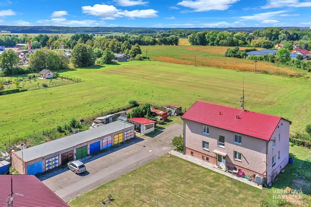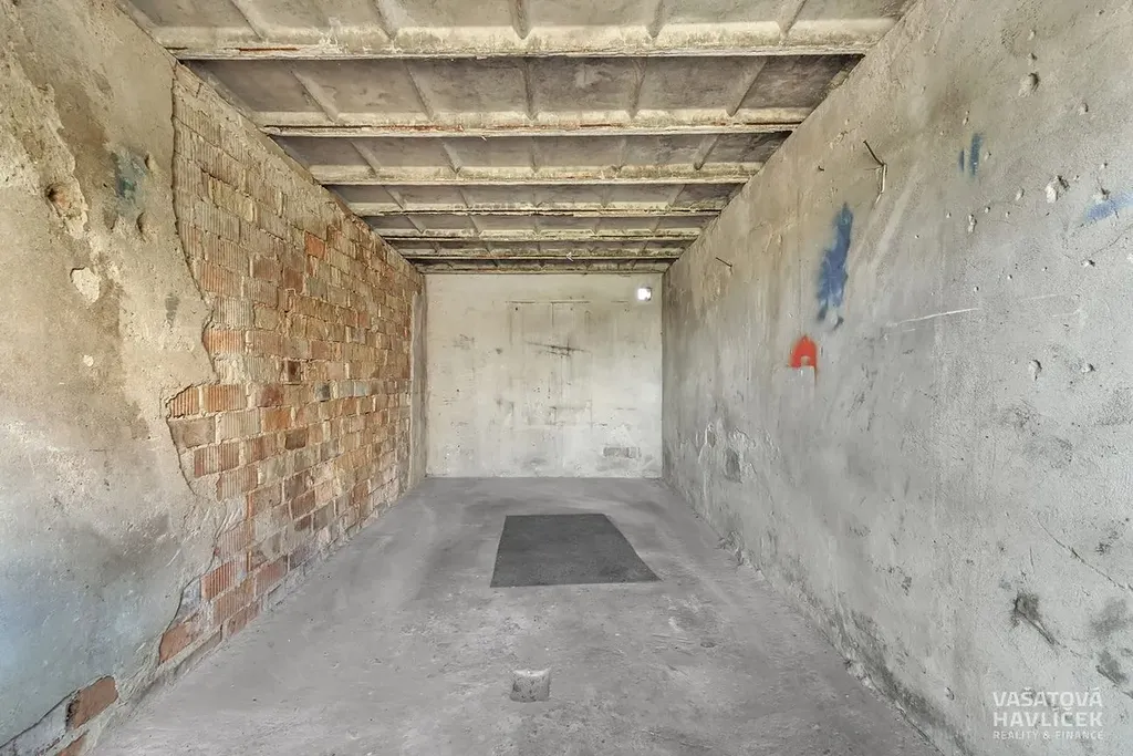 Součástí prodeje je i zděná cihlová suchá garáž na vlastním pozemku v dobrém technickém stavu. Vnitřní rozměr garáže 2,72 x 5,58 m. Vnitřní rozměr vrat 2,38 (šíře) x 2,09 m (výška). Na střeše jsou položeny asfaltové pásy. Betonová podlaha. Plechová dvoukřídlá vrata. Rozvod elektřiny připojen.