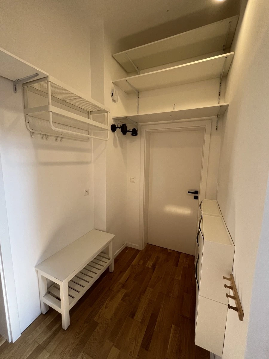 Byt se nabízí částečně vybavený. Kuchyně situovaná do slunné zahrady disponuje lednicí, myčkou, elektrickou troubou, varnou deskou, mikrovlnnou troubou a digestoří. Obývací pokoj je zařízen skříněmi, křeslem a knihovnou. Součástí ložnice jsou šatní skříně. Velkou výhodou jsou oddělené neprůchozí pokoje, které svými rozměry zajišťují soukromí. Vstupní chodba disponuje policemi s úložnými prostory, botníkem a lavicí. Součástí koupelny je WC, rohová vana, umyvadlo se zrcadlem a pračka.