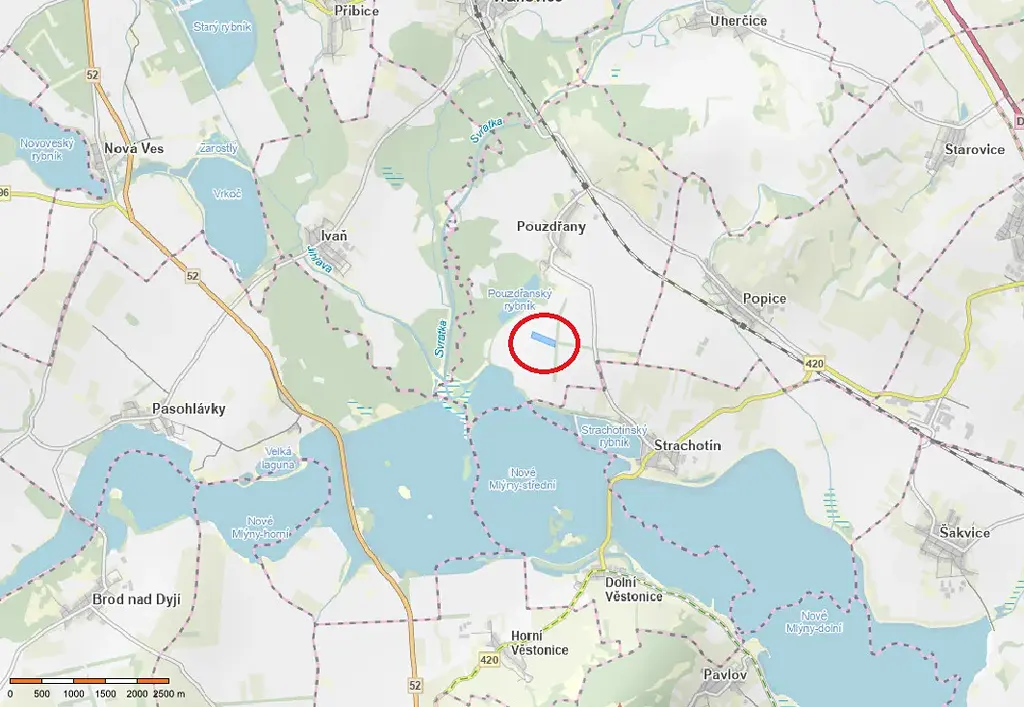 Pozemek se nachází v atraktivní oblasti jižní Moravy, v blízkosti vodní nádrže Nové Mlýny, která patří mezi významné krajinné a rekreační lokality regionu.