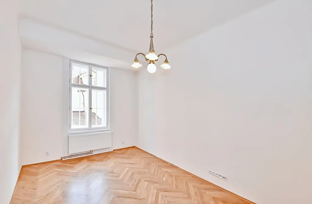 Nově zrekonstruovaný prostorný byt 3+1 (2 ložnice, 1 koupelna) o celkové ploše 95 m² se nachází ve 2. patře rezidenční budovy v prestižní lokalitě Praha 1 – Malá Strana, ulice Karmelitská.