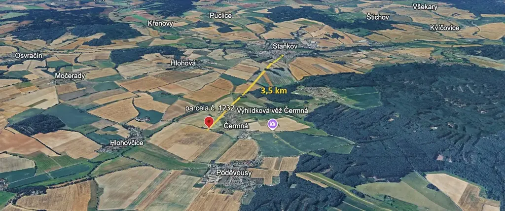 Prodej stavební parcely 2 049 m² – Čermná u Staňkova (lokalita Za rybníkem)