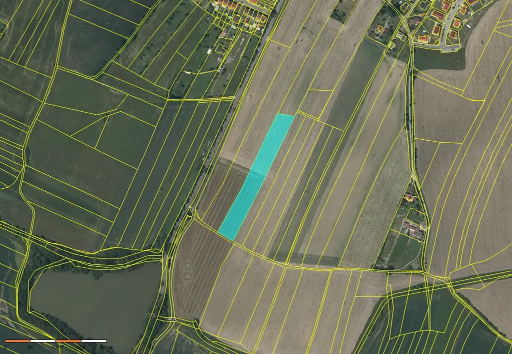 Pozemek je aktuálně propachtován (nájemní vztah) společnosti AGRO Vodňany, což může být zajímavé pro investory hledající stabilní výnos.