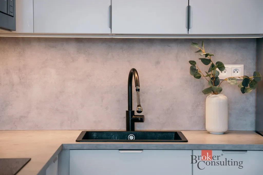 Na první pohled zaujme světlý a vzdušný interiér, který je laděný do jemných, nadčasových tónů. Obývací část s kuchyňským koutem tvoří příjemné centrum celého bytu, kuchyňská linka je kompletně vybavena vestavěnými spotřebiči (myčka, lednice, indukční varná deska a trouba), takže nabízí maximální komfort pro každodenní život i okamžité nastěhování. Díky orientaci oken na východ je byt krásně prosvětlený ranním sluncem a působí velmi příjemnou atmosférou po celý den.