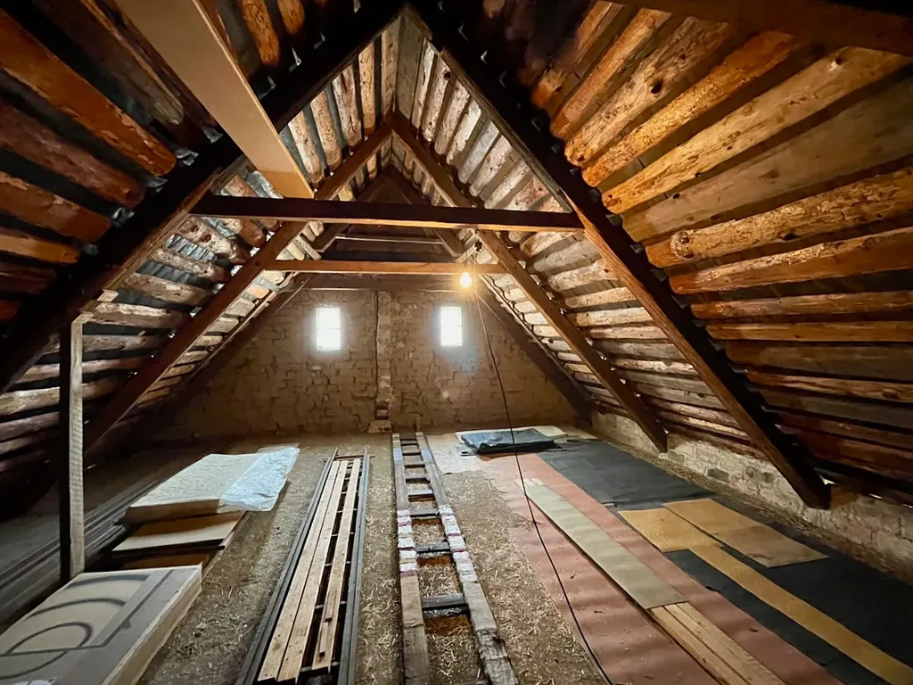 Na obytnou část navazuje stodola, která nabízí další praktické využití – dílna, sklad, či možnost rozšíření obytného prostoru. Velkým benefitem jsou též půdní prostory, které nabízí další potenciál pro rozšíření obytné části, které jsou nyní přístupné ze stodoly.