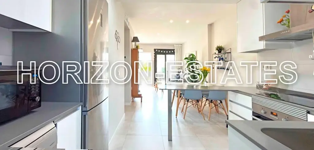 Byt se nachází ve velice moderním a udržovaném rezidenčním komplexu tvořeném řadovými domy, jehož součástí je společný venkovní bazén. Leží v lukrativní a prestižní čtvrti Mil Palmeras (provincie Alicante, Španělsko), v docházkové vzdálenosti jen pár minut chůze od moře, pláže a veškeré infrastruktury.