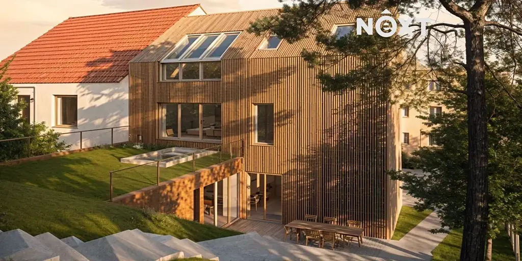 - autentické prvky původní stavby v kombinaci s moderní architekturou