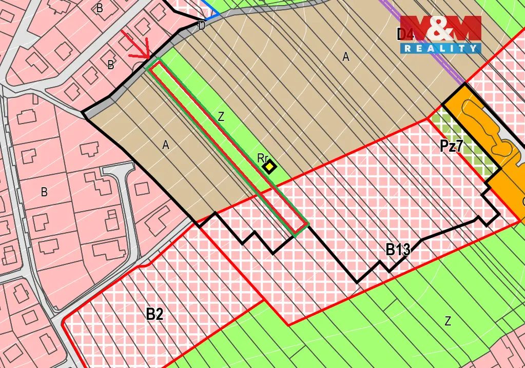 Pozemek je veden jako zahrada a pouze část zasahuje do návrhové plochy bydlení B13 dle územního plánu obce. Zbývající část je určena především pro zahradní využití. Na pozemku je možné realizovat například pergolu, zahradní domek na nářadí, skleník, altán nebo jiné drobné stavby související s rekreačním využitím zahrady. Dle sdělení obce se však v této lokalitě v dohledné době s výstavbou rodinných domů nepočítá.