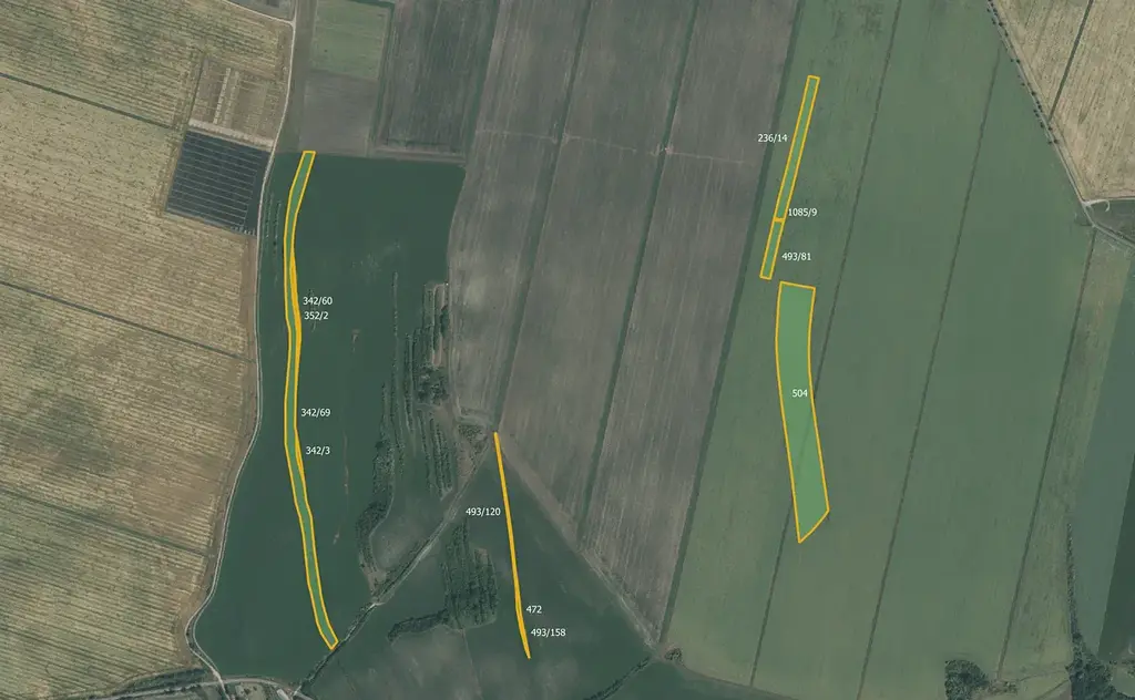 -> parc. č. 236/14, 342/3, 342/60, 342/69, 352/2, 472, 493/81, 493/120, 493/158, 504, 507, 1085/9 (LV 454)