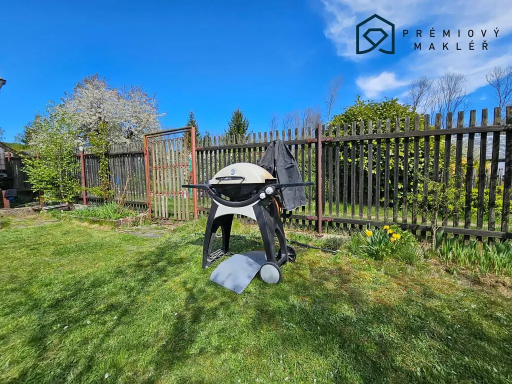 Zahrada je plně oplocená a nabízí řadu prvků pro pohodlí i zábavu: