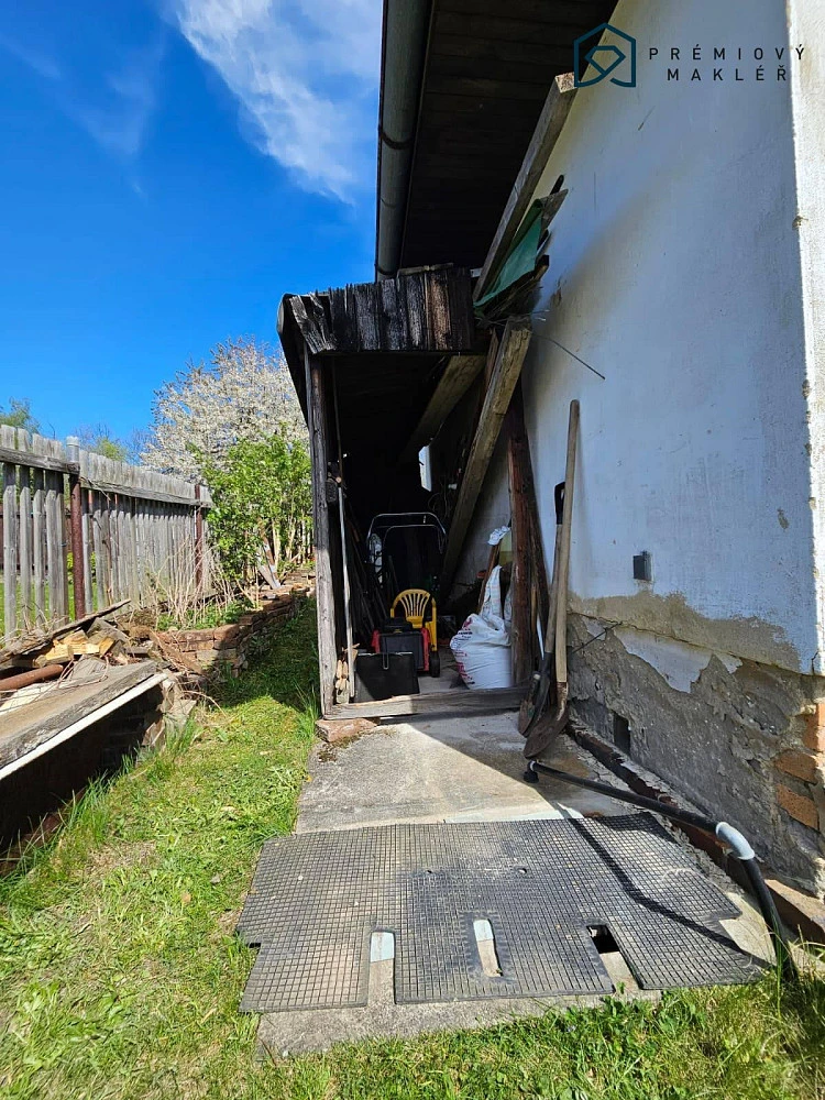 Na pozemku se nachází zděný domek o velikosti 16 m², který je podsklepený a disponuje také půdním prostorem. Součástí prodeje je i vybavení chaty, včetně kuchyňské linky, nábytku, lednice, kamen typu Petry a toalety.