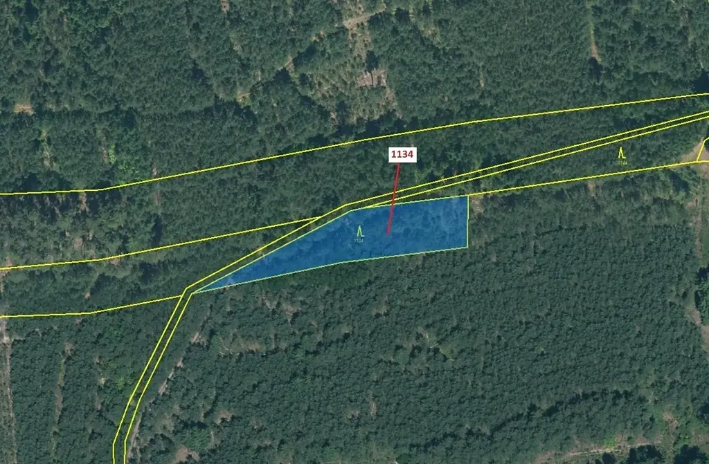 Lesní pozemek o výměře 1636 m2, parcelní číslo 1134, podíl 1/1, katastrální území Podbořánky, obec Jesenice, obec s rozšířenou působností Rakovník, okres Rakovník, Středočeský kraj.