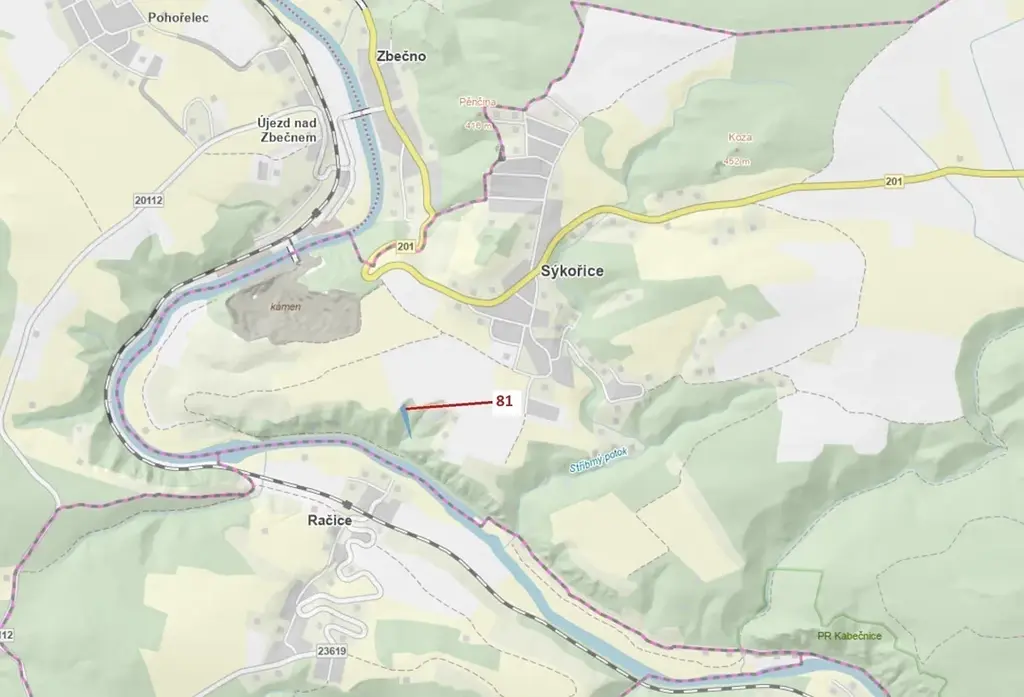 Lesní pozemek o výměře 1 816 m2, parcelní číslo 81, podíl 1/1, katastrální území Sýkořice, obec Sýkořice, obec s rozšířenou působností Rakovník, okres Rakovník, Středočeský kraj.