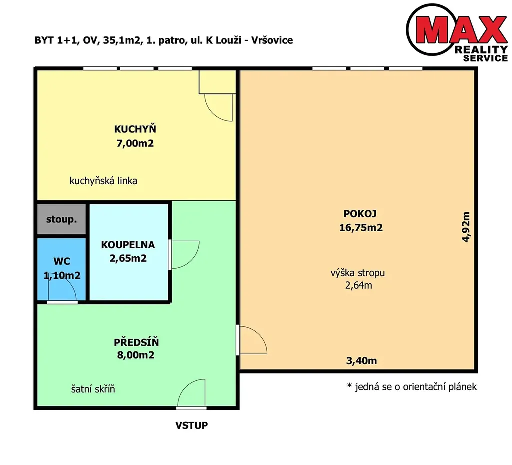 Nabízíme Vám byt k dlouhodobému pronájmu o dispozici 1+1 a velikosti 35,1m2 situovaný v 1. patře bytového domu s výtahem.