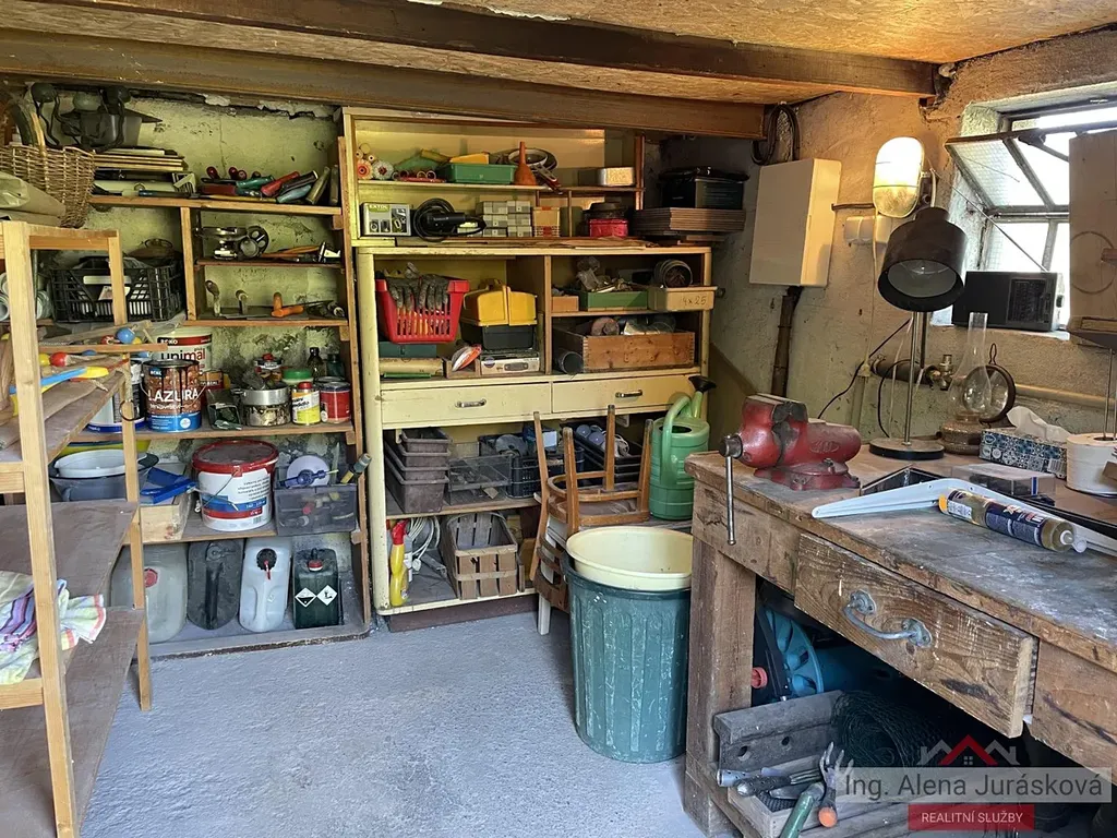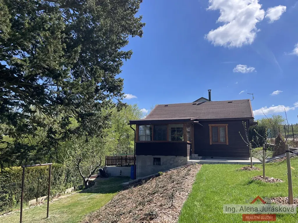 Pod verandou je k dispozici sklep s dílnou. Chata je umístěna na severně orientovaném svahu obklopena nově založenou zahradou.